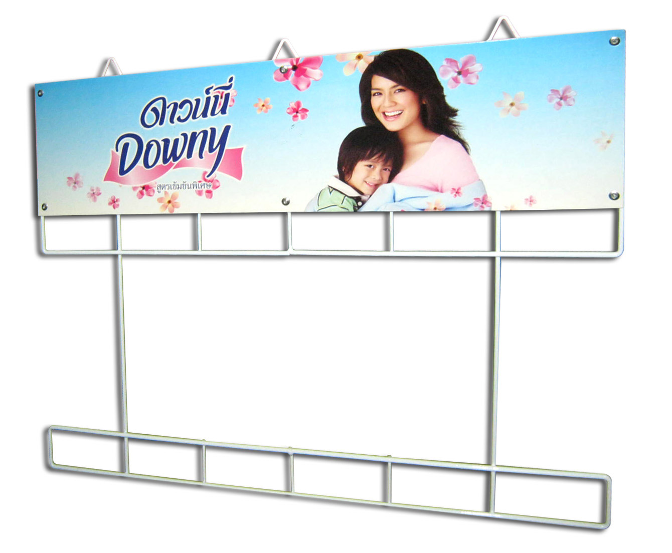 สายแขวนมีช่องพลาสติคใสเพื่อโชว์สินค้า มีทั้งเพื่อจำหน่ายและเพื่อให้ลูกค้าทดลองหรือทดสอบสินค้า ดูตัวอย่างงาน