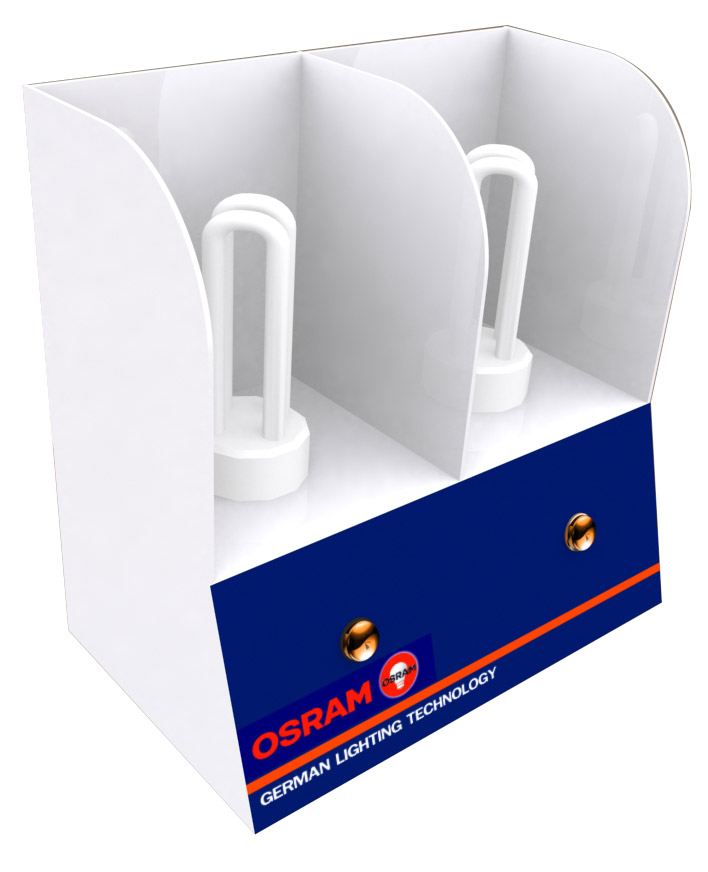 แผงทดสอบสินค้า ออกแบบมาให้ใช้ได้ทั้งโฆษณาตัวสินค้า และทดสอบคุณภาพของตัวสินค้า เช่น ติดตั้งขั้วหลอดไฟ ไว้ให้ลูกค้าได้ทดสอบความสว่าง สี ของหลอดไฟ ดูตัวอย่างงาน